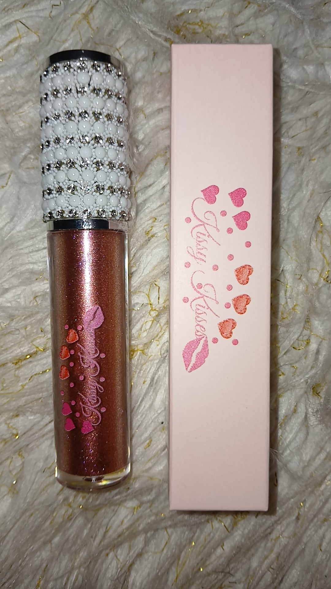 -long lasting, rose gold tinted gloss with a bronze colored shimmer